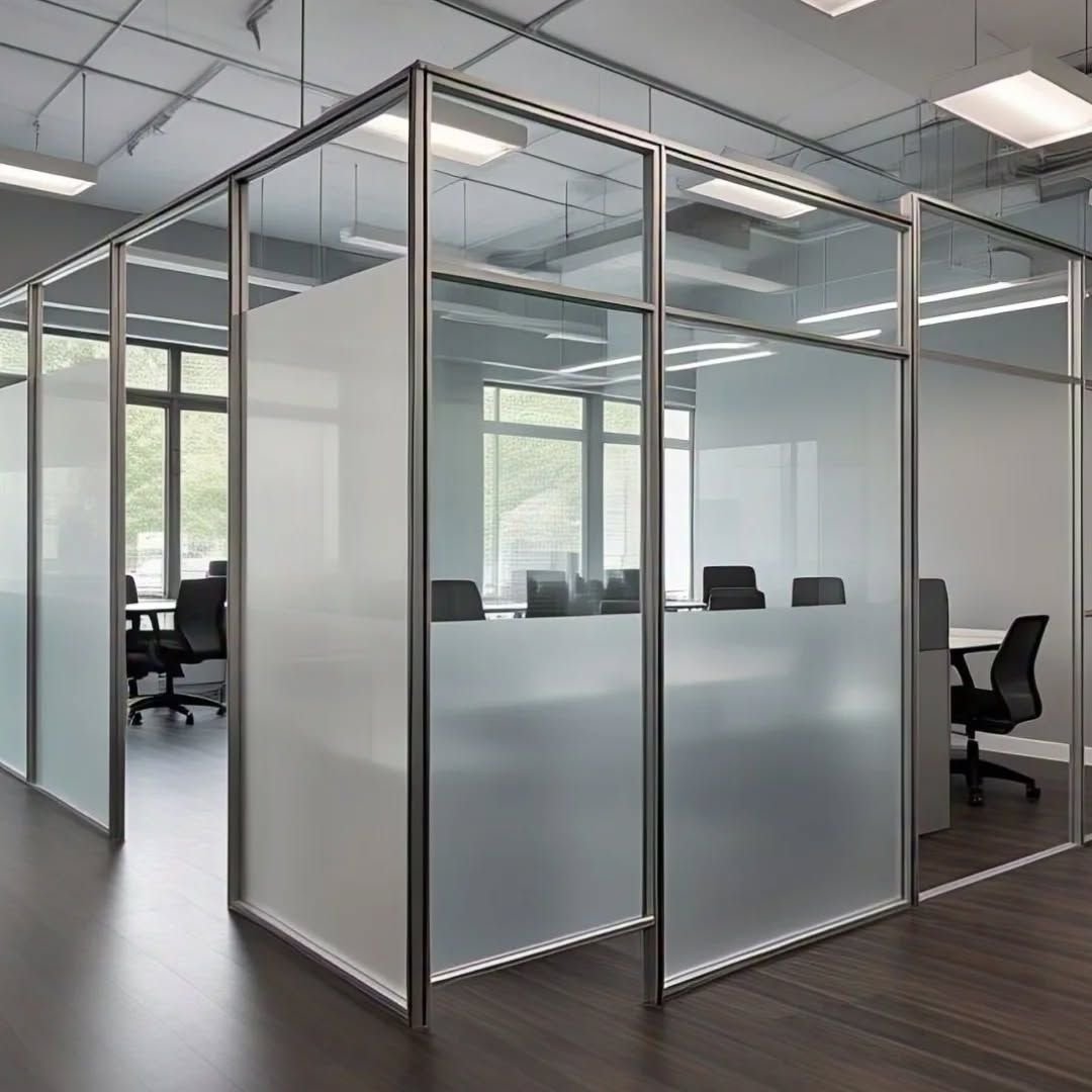 Stylish and transparent glass partitions creating modern, private, and professional office cabins.